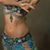 This costume was custom-made for me by Bella in Istanbul. I sent her the classic antique photo of Mata Hari and she made this costume for me based on the photo. It is in shades of blue and green with pearl and crystal accents.