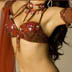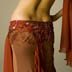 This costume was custom-made for me by Bella in Istanbul. It is brown lycra with an unusual mix of red and purple accents. The over-all effect is very muted and a bit retro.