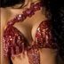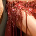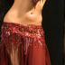 Bella made this costume for me in January of 2009 and i dragged it all across Europe and Asia. I loved itt for it's simplicity and how beautifully it fits. The bra and belt are covered with a burgundy metallic foil-like fabric, with silvery burgundy beading and a flower motif that extrends along the bottom of the belt and across the chest diagonally.