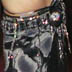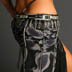 The Costume is made with a snake-skin textured camouflage print lycra in grey and black, with flower motifs on the hip, bra, and arm cuffs. The skirt is rouched over the hips and butt, and two hips straps coming asymetrically off the belt. I wore the costume in Singapore while i was performing and it's my favorite costume for hot weather. It's light weight and flattering. I bought so many costumes last yera that I haven't really worn any of them very much. This one is in perfect condition with no bead loss.