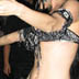 Bra, Belt + Skirt in 1, Upper Arm Cuffs, Headband, Veil (black chiffon) Lycra.