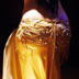 I bought this in Bella's shop in Istanbul in September and it is phenomenal. So classic and symmetrical and flattering. The skirt is gold lycra with an opening and chiffon modesty panel over each leg. The skirt is bias cut and is all one piece of frabric, with a draped bustle in the cetner back. It is heavy and liquid when you dance and it feels great.