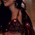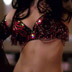 The bra and skirt have a subtle flame motif across the front, with two interlocking circle cutouts over one hip. The sleeves are attatched at the shoulders, but can be removed, and the hip strap stays up surprisingly well. It's in perfect condition.