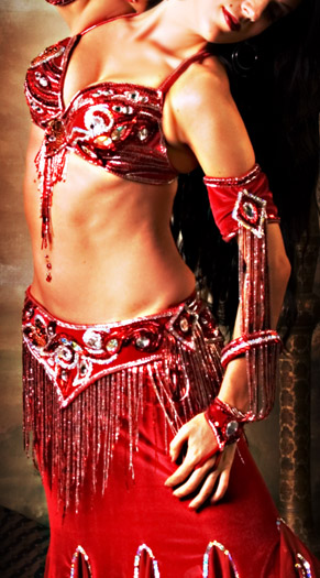 This bellydance costume is custom-made in Istanbul by Bella. The mermaid skirt is soft stretch velvet with chiffon inserts and silver sequins along the seams. The bra is a full C cup with no padding. There is no bead loss in the fringe or decorations on the bra and belt and the slave bracelets are also in perfect condition (although they are very delicate). It's a great costume for up-coming cold weather and it's deliciously comfortable to wear stretch velvet againt your skin. I've had it for about a year and a half but it's in nearly perfect shape. There are terrible rumors that Bella might be retiring soon, so here's your chance to get one of her one-of-a-kind costumes.