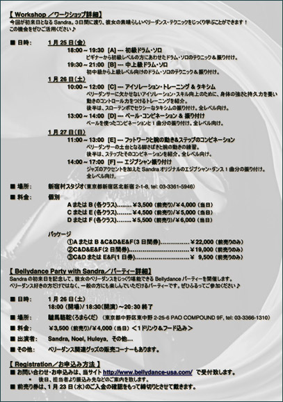 Sandra will be an instructor at the first annual Miami Bellydance Convention. Please visit their website for complete details. www.miamibellydanceconventi on.net |